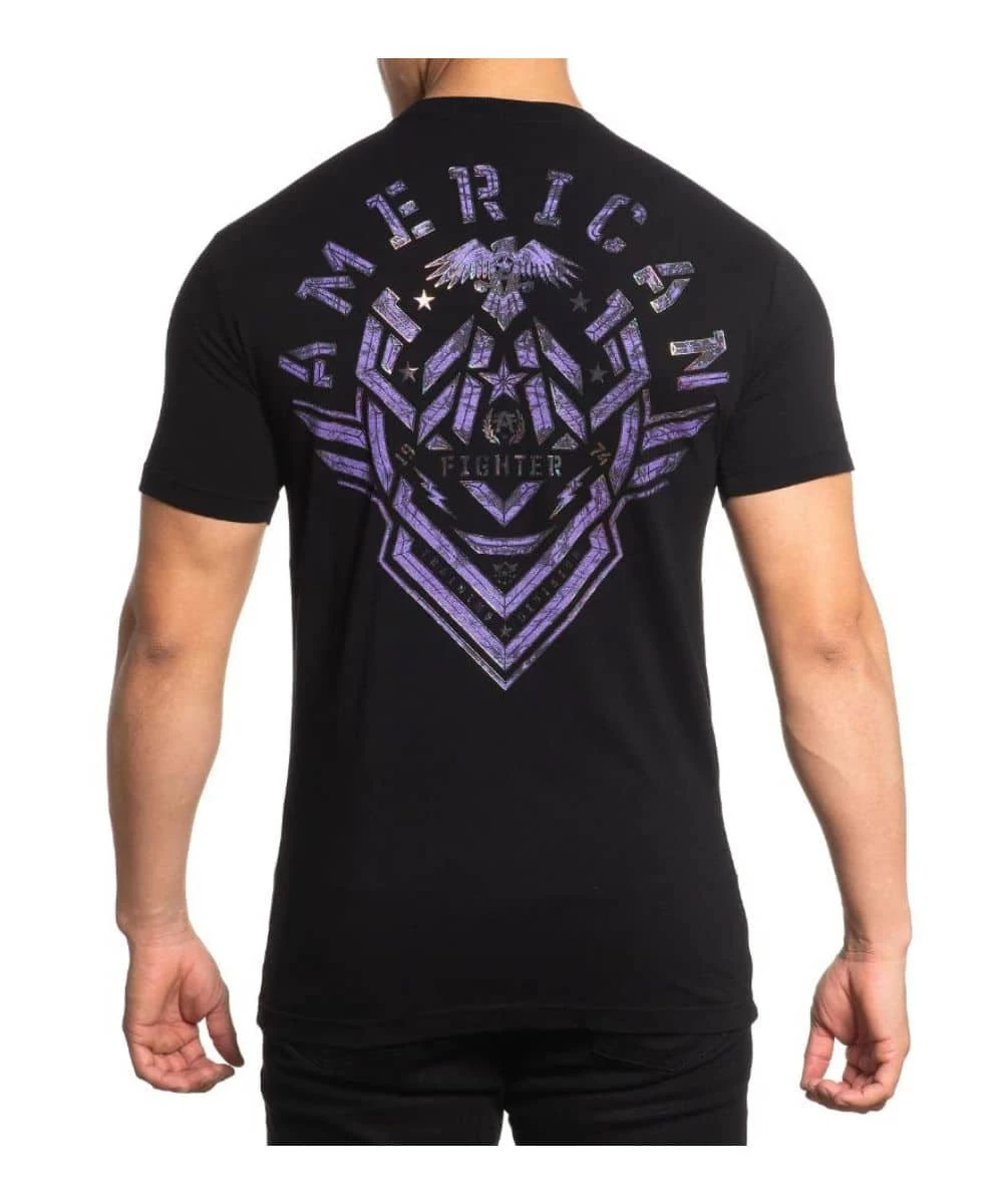 100% Cotton; Color: Black; Design Is Purple Metallic Waterbase With Opalescent Foil; Short Sleeves; Crew Neck; Tagless Neck; Style #FM13476