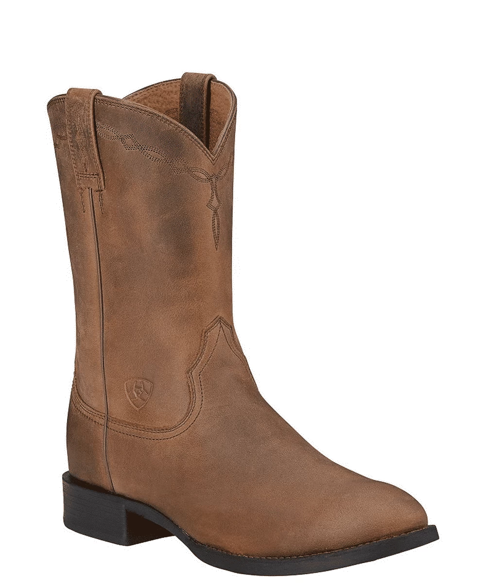 Full Grain Leather; Color: Distressed Brown; 10″ Upper; Four Row Western Collar Stitch Pattern; Breathable Leather Lining; Duratread Outsole; Round Toe; 1 1/4″ Roper Heel; ATS Sole Technology; Style #10002284
