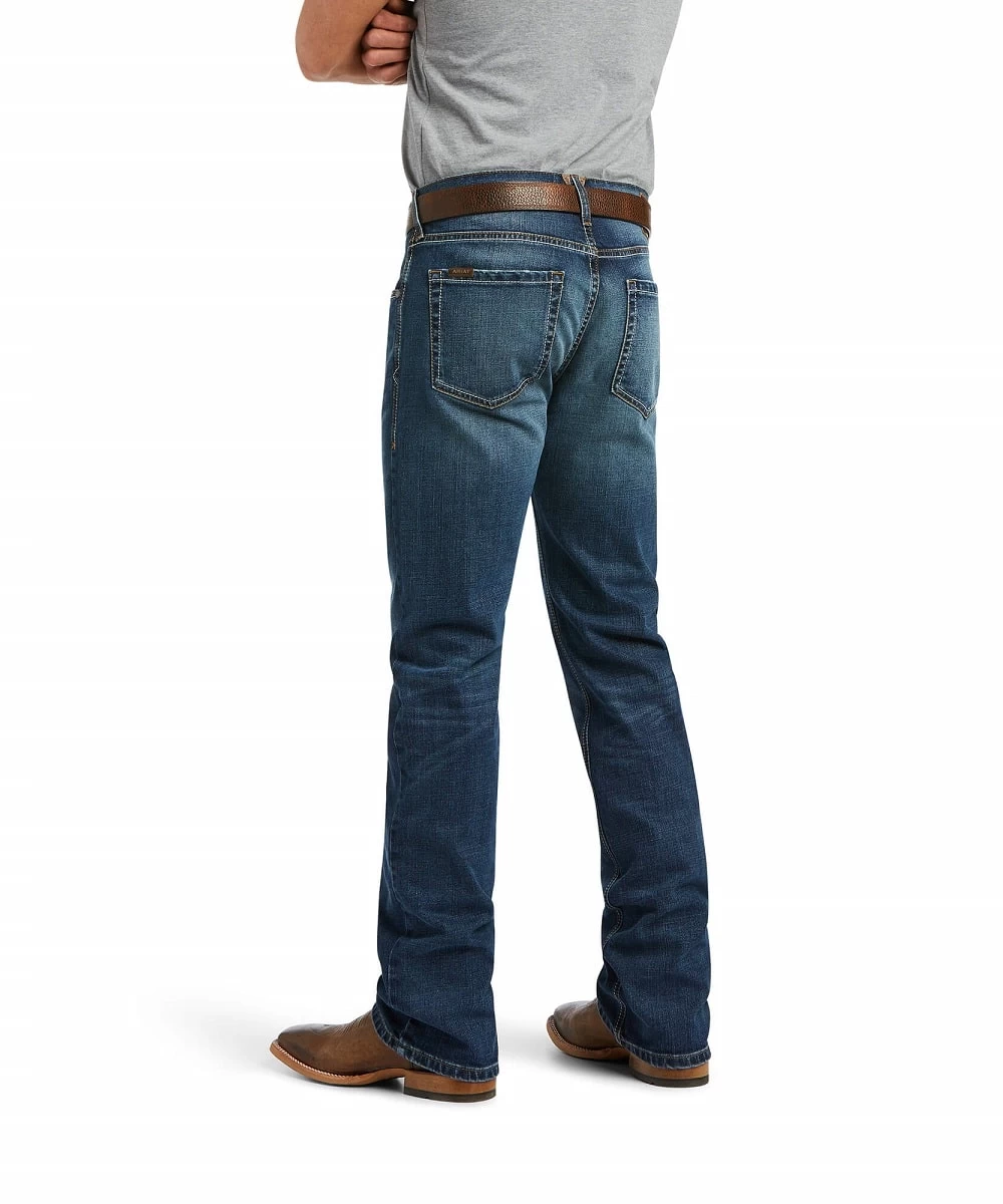 99% Cotton/1% Spandex, 13.5 Oz. Ring Spun TekStretch Denim; Sits Below The Waist; Straight Through Seat And Thigh; Whiskers; Fading; Extra Deep Front Pockets; Heavy Duty Zippers And Hardware; Anchored Belt Loops; Loop Lock Reinforced Rear Belt Loop; No Rub Comfort Inseam; Straight Leg Opening; Style #10040124