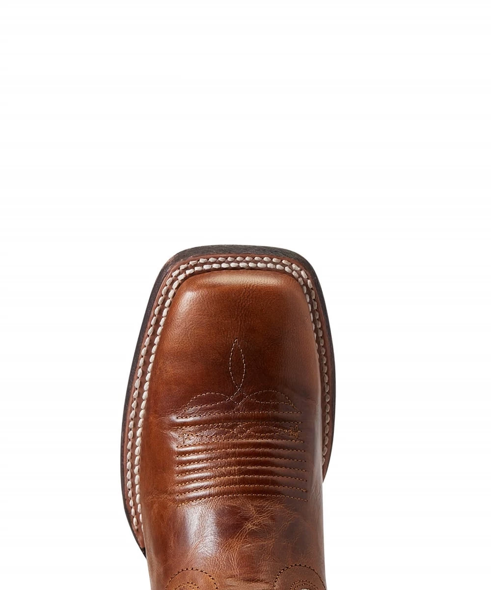 Brown And Crackle White Full Grain Leather; Leather Lining; American Flag And Gold Star Embroidery Design; Removable All Day Cushioning Insole; 4LR Lightweight Stabilizing Shank For Support; Double Stitch Welt; Square Toe; Hand Nailed Distressed Leather Sole; Approved For Riding; Can Be Resoled; Style #10040400