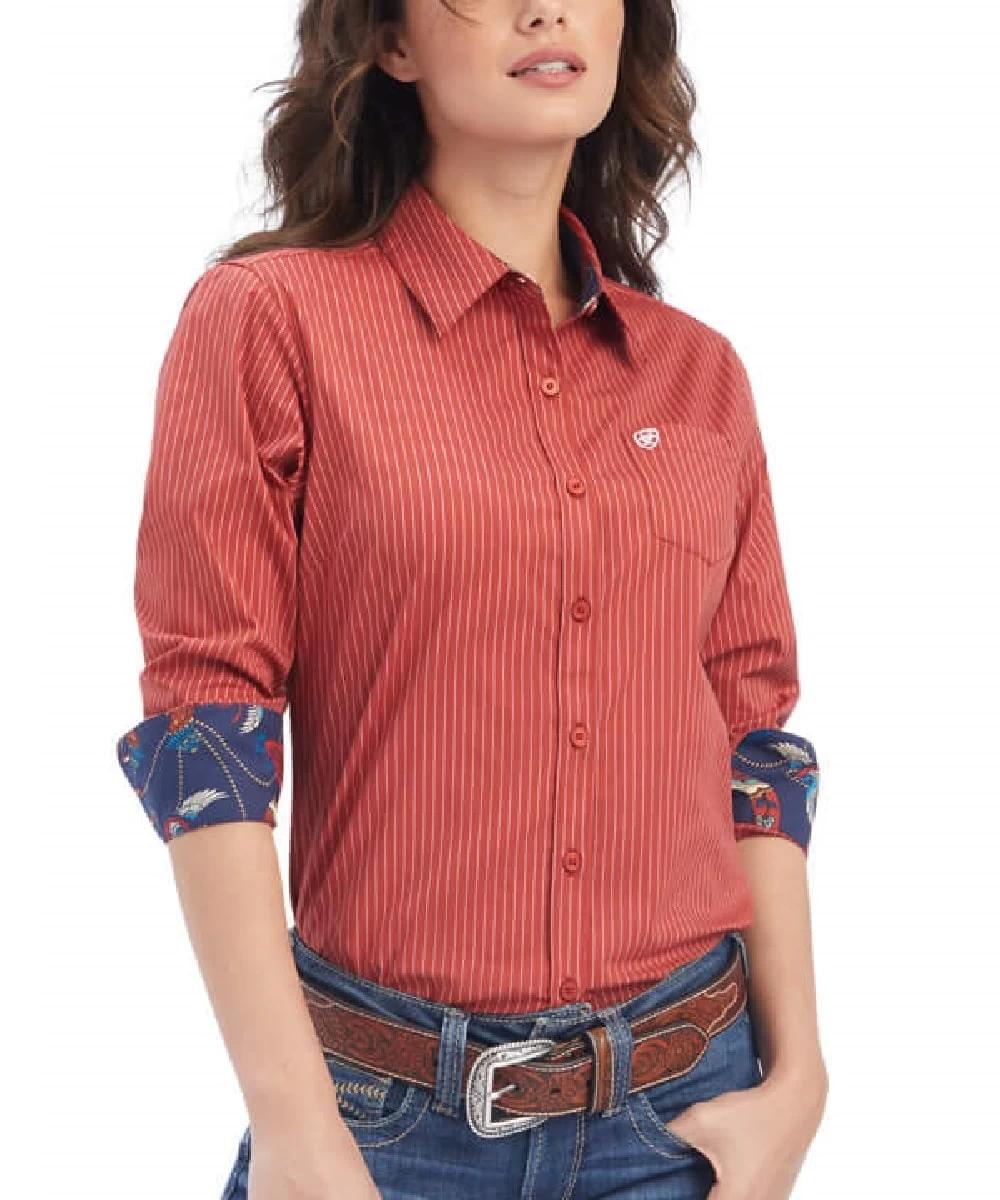 96% Cotton/4% Spandex; Greater Arm Mobility; Wrinkle Resistant; Spread Collar; Long Sleeve; Button Down Front And Cuffs; Single Open Chest Pocket With Logo Embroidery; Straight Back Yoke With Logo Embroidery; Contrast Trim On Cuffs And Inner Neck Lining; Color: Bossa Nova/White Pinstripe; Style #10041534