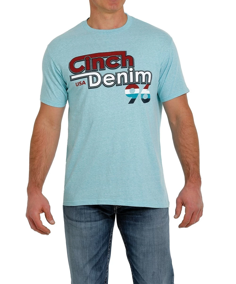 Cotton-Polyester Blend; Crew Neck; Front Cinch Denim ’96 Print; Color: Turquoise With Red, White And Blue Print; Style #MTT1690476