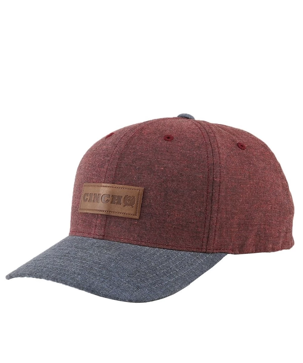 Six Panel Construction; Textured Fabric Burgundy Crown/Navy Bill; Leather Cinch Logo Patch On Front Center; Snap Back Closure; Style #MCC0111003