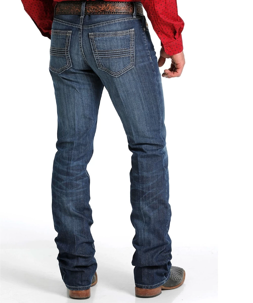 99% Cotton/1% Spandex; 11 Oz. Performance Denim; Stretch Fit; Slim Fit; Boot Cut; Mid Rise; Zip Fly; Five Pocket Design; Whiskering; Hand Sanding; Chevrons; Style #MB55336001
