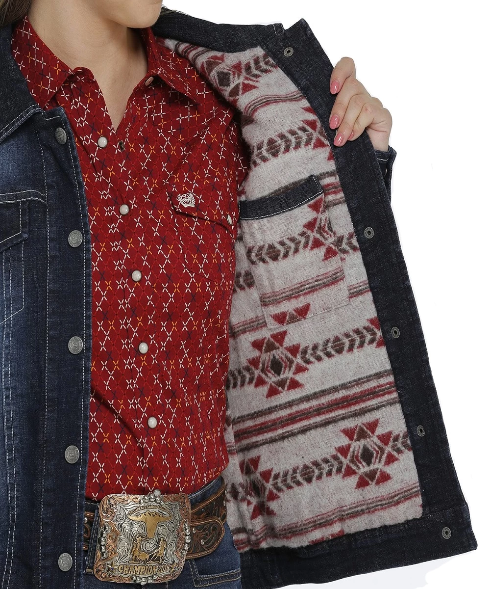 Cotton Polyester Spandex Blend; Printed Polyester Lining; Pewter Snaps; Faux Leather Label; Spread Collar; Snap Front And Cuffs; Two Snap Flap Chest Pockets; Color: Indigo; Style #MAJ9878004