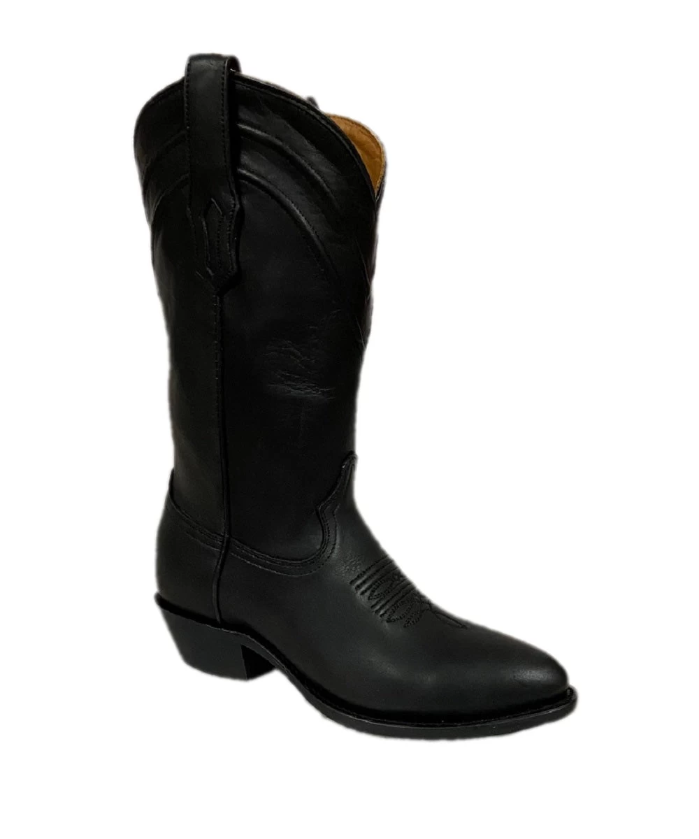 Black Leather; Leather Lined; Double Cushion Comfort Insole; Black Vamp Embroidery Accent; Black Embroidered Collar Accent; Single Stitch Welt; R Toe; Western Heel; Leather outsole; Style #A4030Â