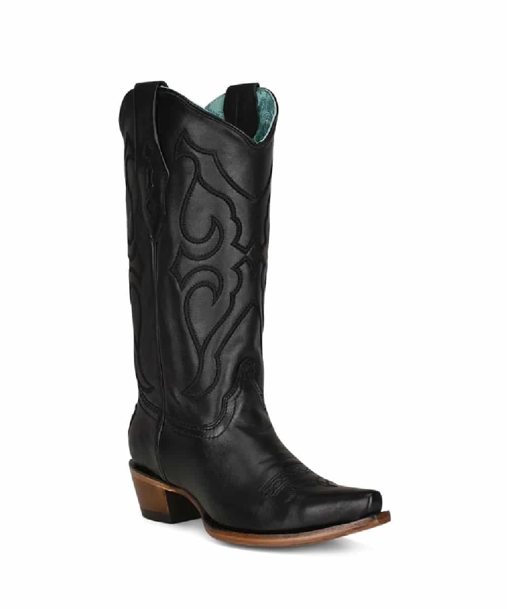 13″ Shaft; Black Cowhide Leather; Leather Lining; Black Stitching Pattern Design; Black Inlay Pull Straps; Goodyear Welt Construction; 2″ Cowboy Heel; Leather Outsole; Style #Z5072