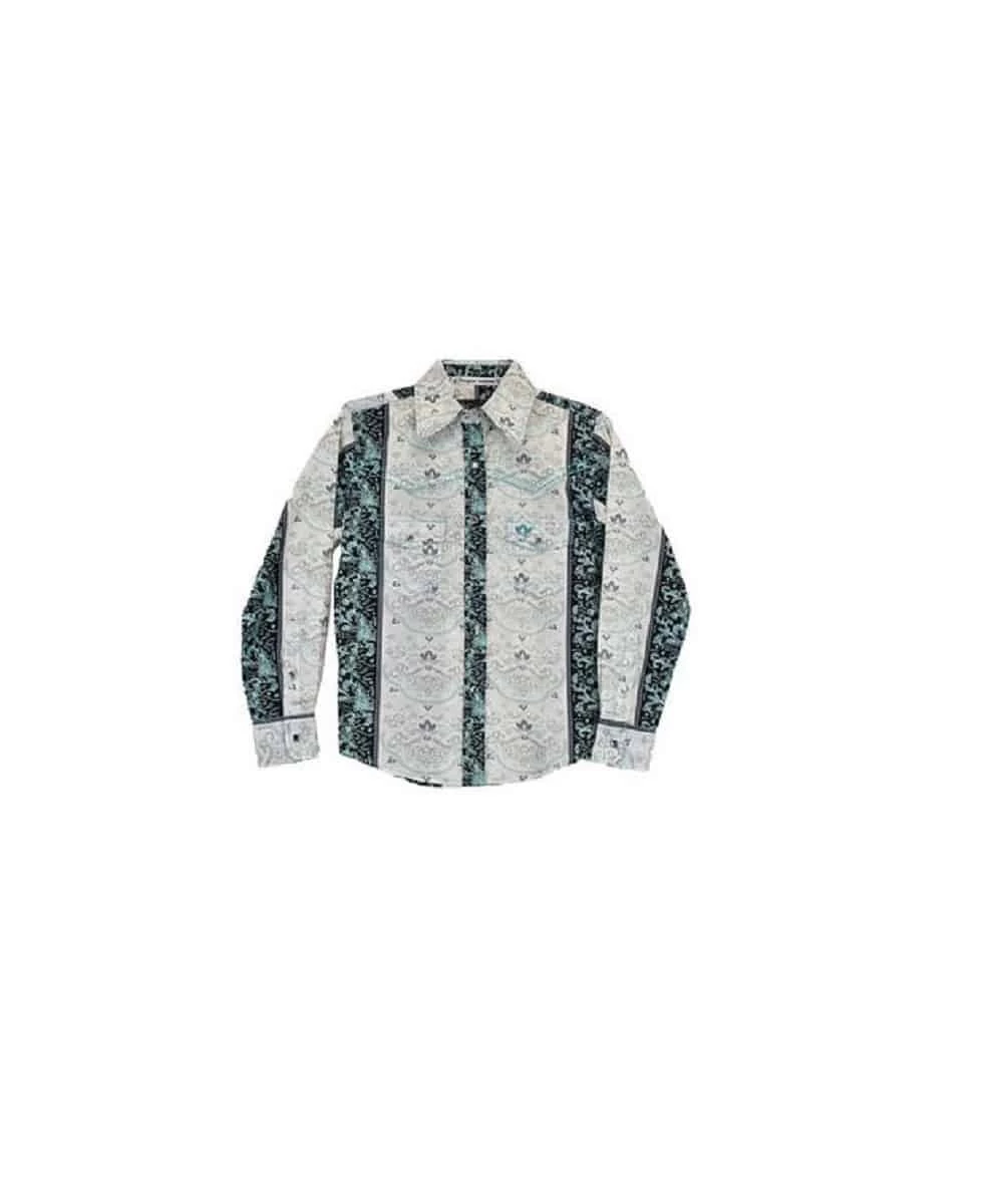 Long Sleeve; Snap Front Closure; Two Snap Flap Chest Pockets; Western Yokes With Mint Stitching; Snap Cuffs; Mint Green Vine Floral Print; Style #425528-352-K