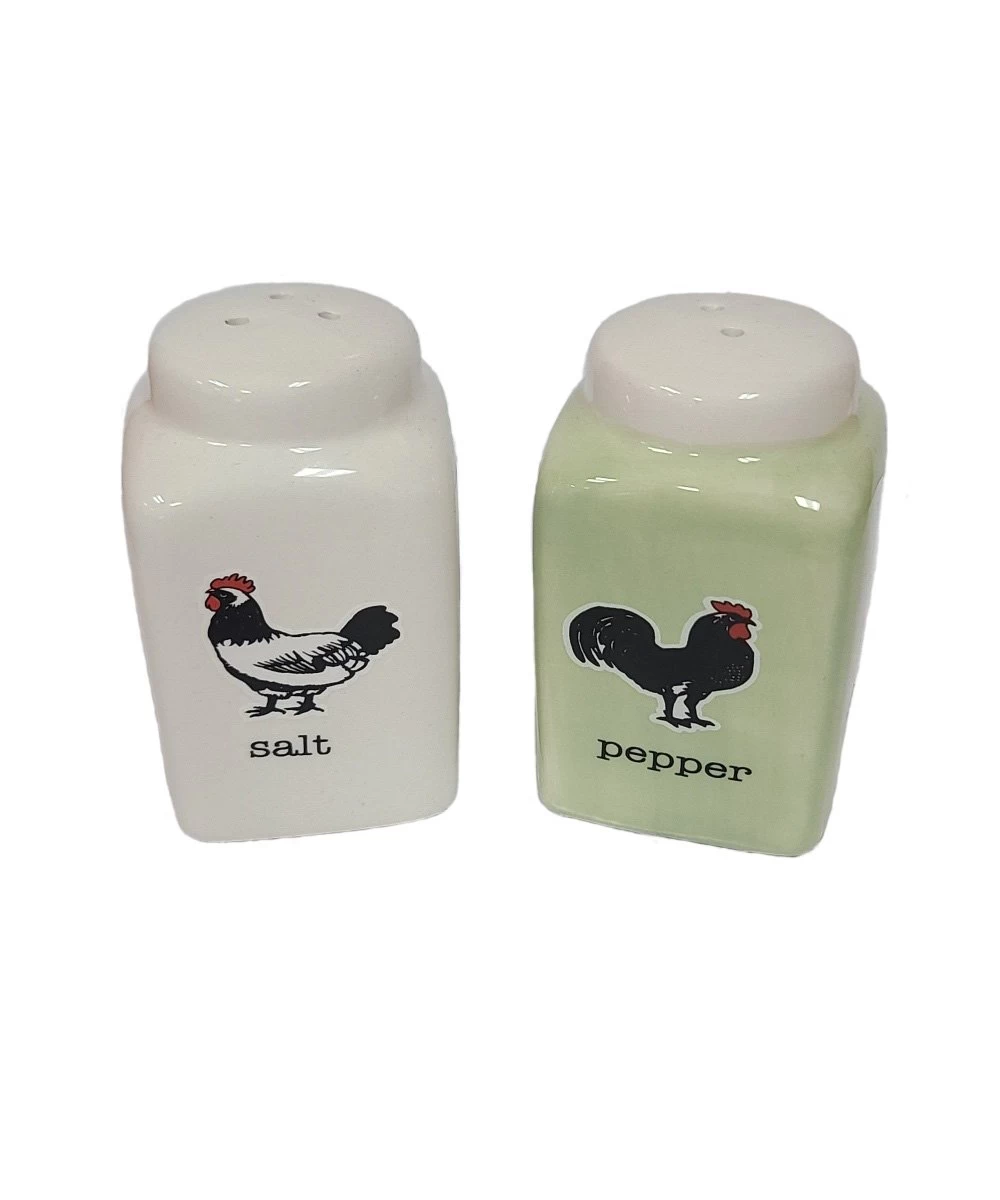 Ceramic; Salt And Pepper Shaker; Front Rooster Or Cow Print; Measures Approximately: 2 32/4″ H X 1 3/4″ W X 1 3/4″ D; Please Note Design Preference On Your Online Order; Style #715723