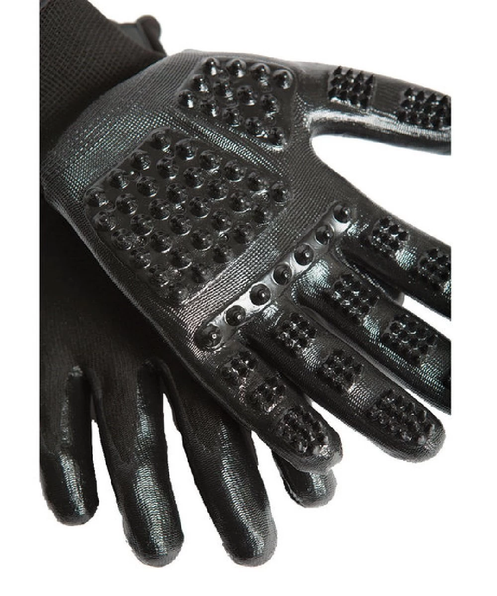 Two-Handed Expert Wet/Dry Grooming Gloves; Nylon Fabric; Shedder Features Non-Abrasive, Flexible, Rubber Scrubbing Nodules On Fingers And Palms; Easily Releases Accumulated Hair; Versatile And Flexible Grip; Lightweight And Extremely Durable; Do Not Crack, Tear Or Mildew Even Under Heavy Grooming And Bathing Conditions; Distributes Natural Oils For Healthy Skin And Coat; Massages And Stimulates Circulation; Tactile Touch; Gently Cleans Legs, Faces And Tight Body Corners; Keeps Hands Clean With Secure Hook And Loop Fastener; Style #16758-5