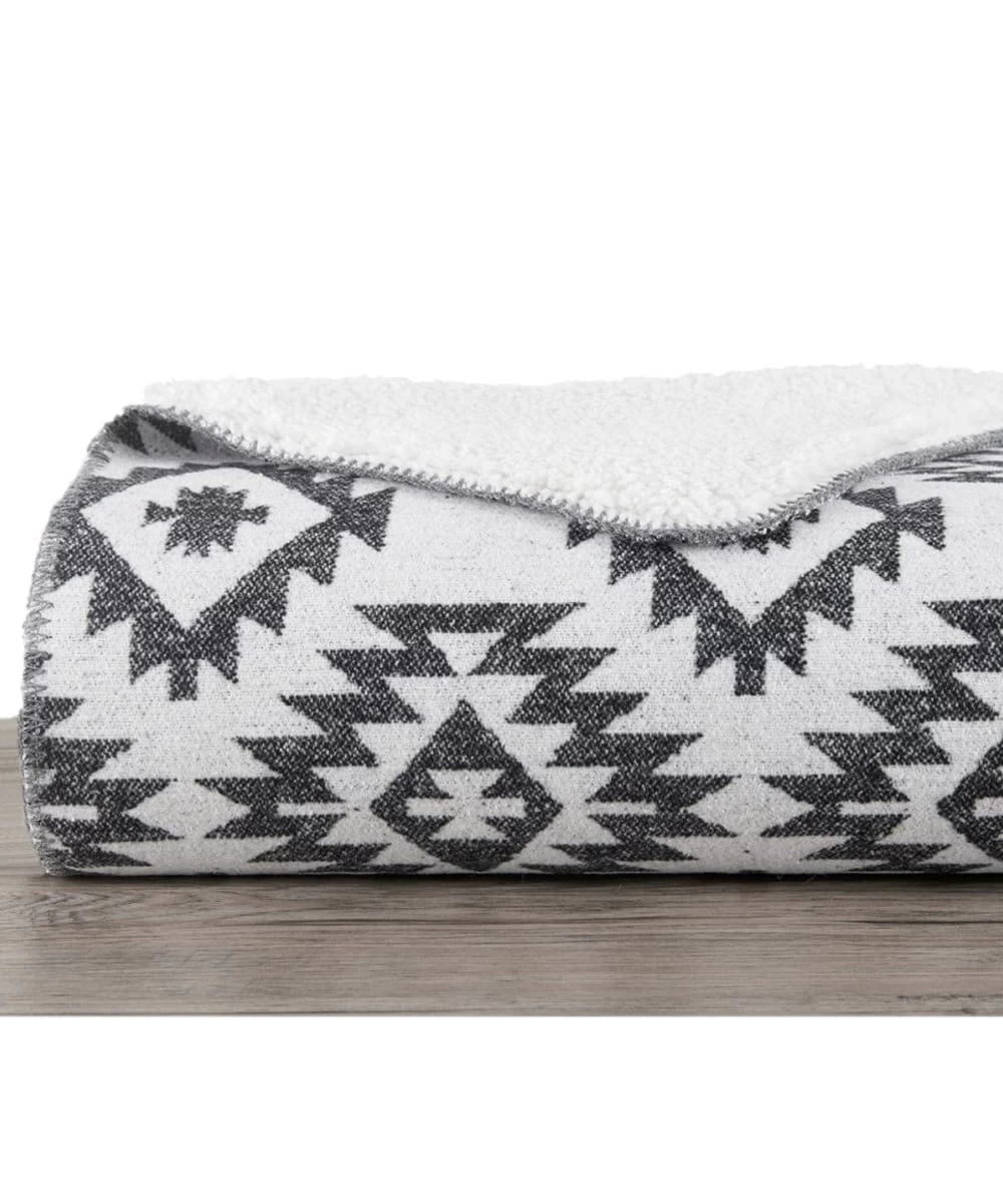 Front: 70% Polyester/20% Acrylic/10% Other; Back: 100% Polyester(Sherpa); Donning Striking Aztec Patterns And A White Sherpa Reverse; Measures Approximately: 50″ W x 60″ L; Color: Black; Style #TR1932