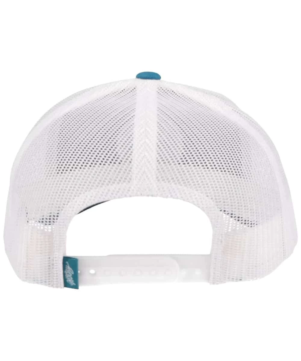 6 Panel Construction; Trucker Style; Teal Front And Bill; White Logo; Curved Bill; Mid-Profile Crown; White Mesh Back; Snapback Closure; Style #2109T-TLWH