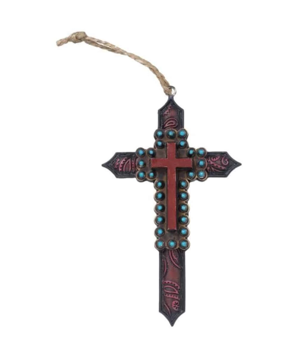 Resin; Red Paisley Design With Cross In Center Outlined By Turquoise Stone Details; Brown Twine Hanger; Style #91-1032-0-0