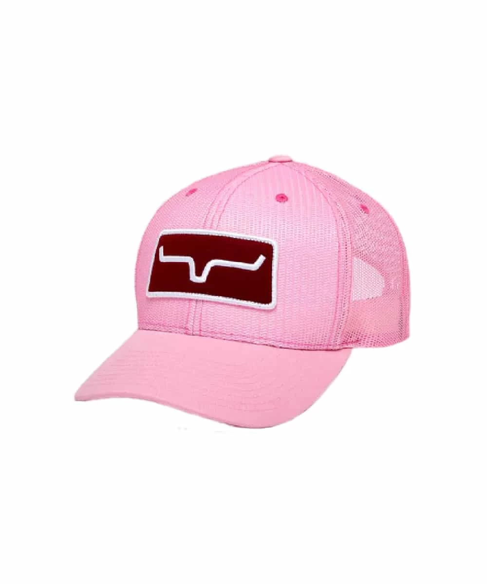 Six Panel Construction; All Mesh Pink Upper; Mid Profile; Curved Bill; Kimes Ranch Logo Patch On Front Center Crown; Snap Back Closure; Style #ALLMSHTRUCKER PNK