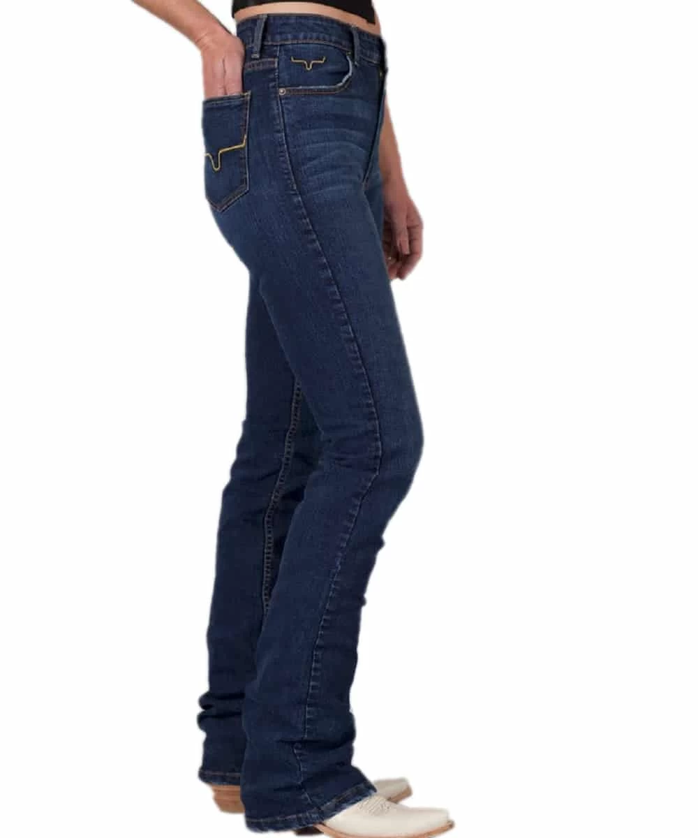 82% Cotton/15% Polyester/3% Elastane; High Rise; Fitted Thigh; Four Pocket Styling; Whiskers; Fading; Stitched Kimes Ranch Logo Back Pockets; Slim Boot Cut; Style #Sarah