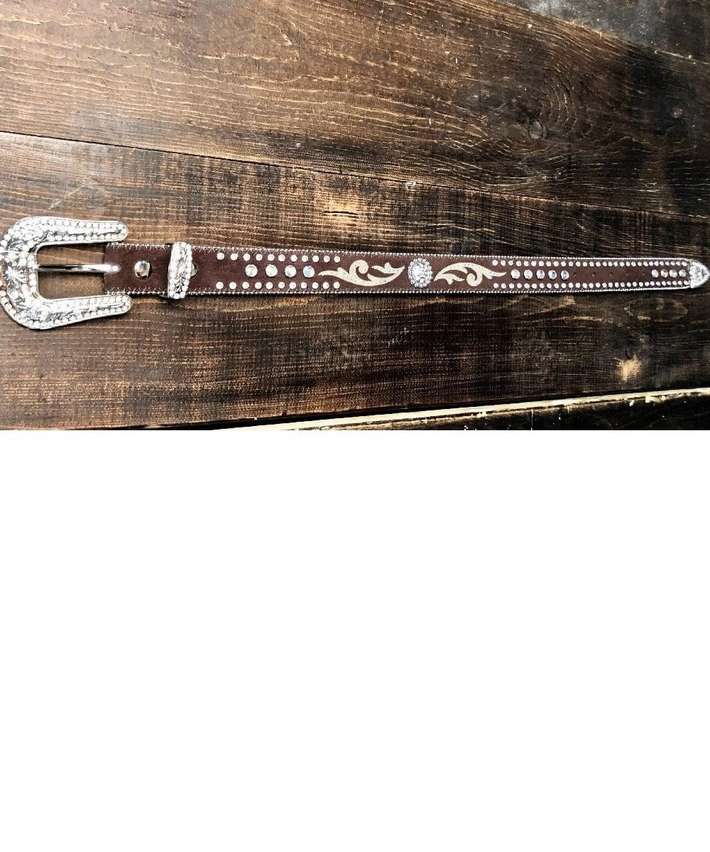 1 1/4″ Wide; Full Grain Leather; Silver Studs And Rhinestone Embellishments; Silver Tone Removable Buckle; Matching Silver Tone Tip And Keeper; Style #N4423402