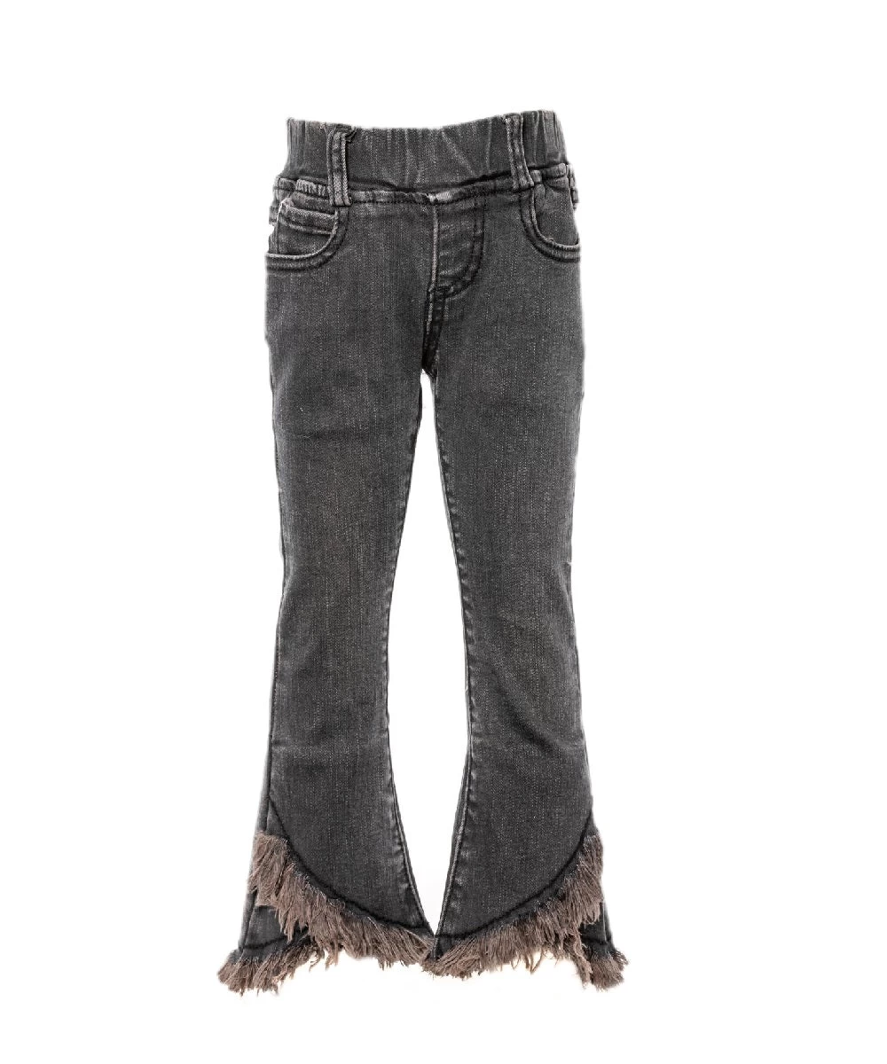 Cotton-Poly-Spandex Blend Stretch Fabric; Elastic Waist; Five Pocket Styling; Criss Cross Raw Hem Leg; style #FP0014