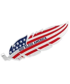99.99% Fine Silver Over Brass; Crafted In Silver Tone With Red, White, And Blue Paint; Feather Shape; Center Reads “God Bless America”; Corkscrew Montana Silversmiths Trademarked Fastening System Will Secure Onto Most Hat Bands; Montana Armor To Prevent Tarnish; Measures Approximately: 4.5″ W x 1.29″ H; Style #HF5458