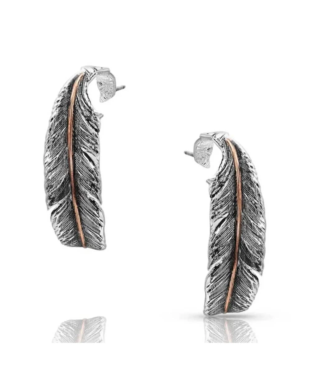 Antiqued Silver Finished Fletching Cascades Down The Outward Arcing Hoop Shape; Smooth Rose Gold Finished Center Vein Runs Down The Length Of The Feather; Hypoallergenic Stainless Steel Post Backs; Style #ER4453RG