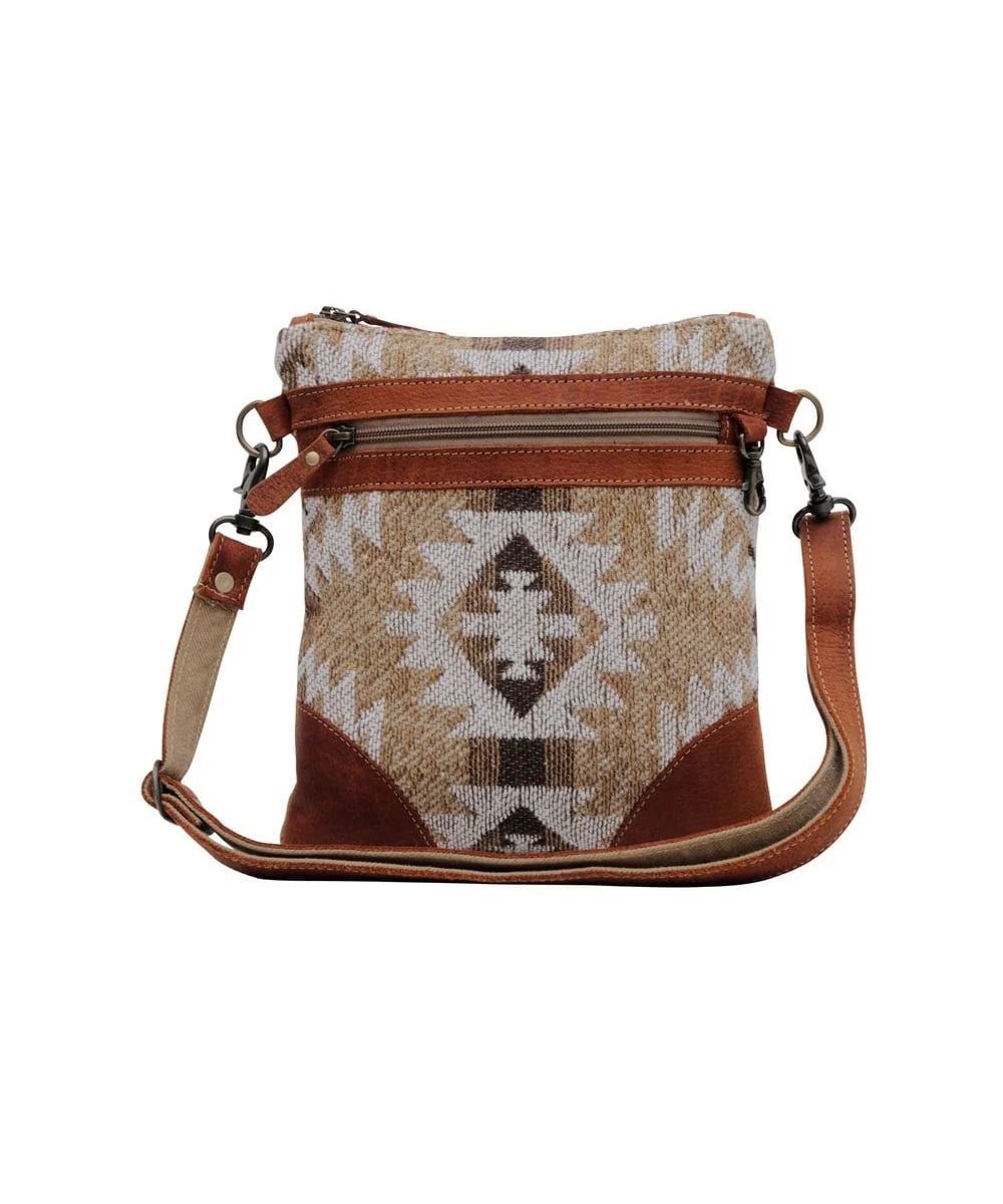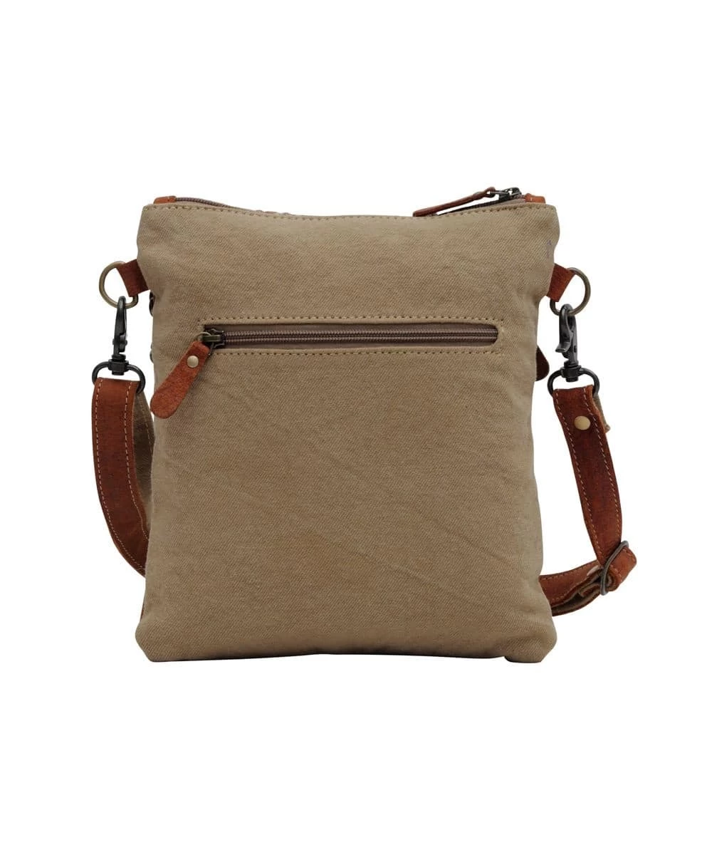 Canvas And Leather Construction; Front Zip Pocket; Back Zip Pocket; Built In Keyholder; Zip Top Closure; Removable Adjustable 22″ Shoulder Strap; Measures Approximately: 11″ H X 10″ W; Style #S-6168