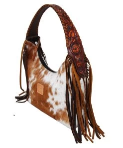 Brown And White Cowhide Hair On Leather Construction; Hand Tooled Leather Handle; Whipstitch Edge; Leather Fringes; Zip Top Closure; Two Open Interior Pockets; One Interior Zip Pocket; Exterior Vertical Two Zip Concealed Carry Pocket; Measures Approximately: 14 1/2″ X 14″ X 4″; Second Image Is For Reference Only To Show The Double Zip Concealed Carry Compartment That Is The Same For This Bag; Style #BL460BN
