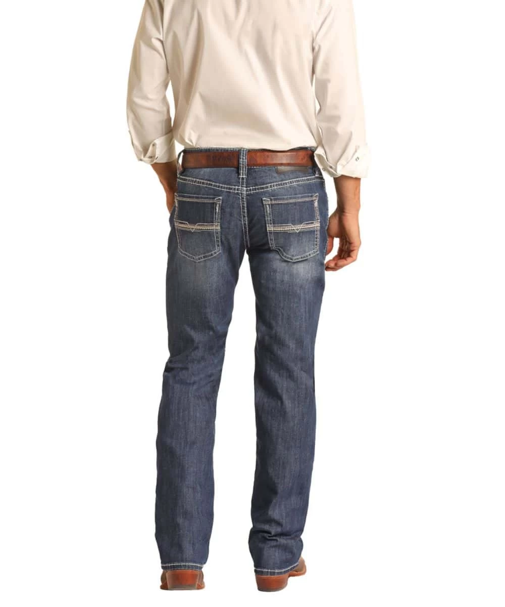 Cotton; Regular Fit; Mid Rise; Zip Fly With Button Closure; Whiskering And Hand Sanding Detail; Five Pocket Styling; Pistol Fashion Stitched Back Pockets; Straight Leg Jean; Dark Vintage Wash; Style #RRMD1PR1G5