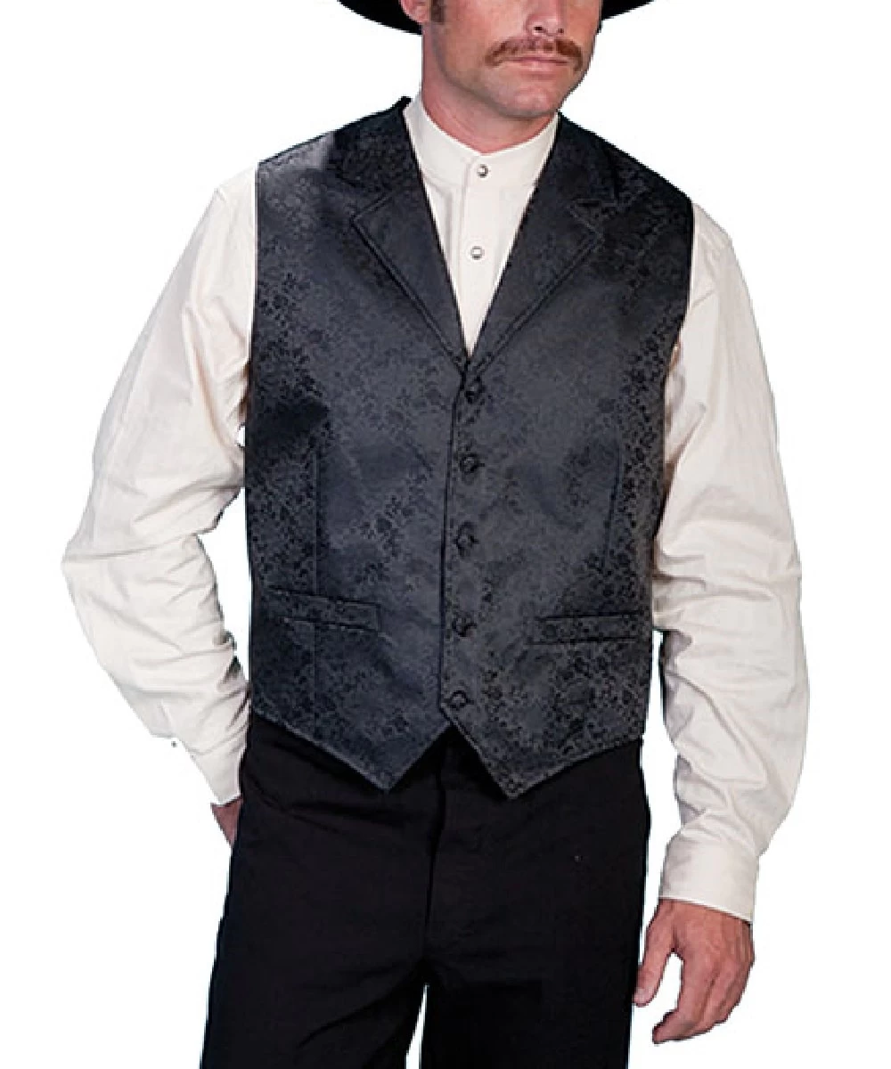 100% Polyester; Notched Lapels; Self Covered Buttons; Two Welt Pockets; Back Adjustable Waist Strap; Color: Black; Style #RW145