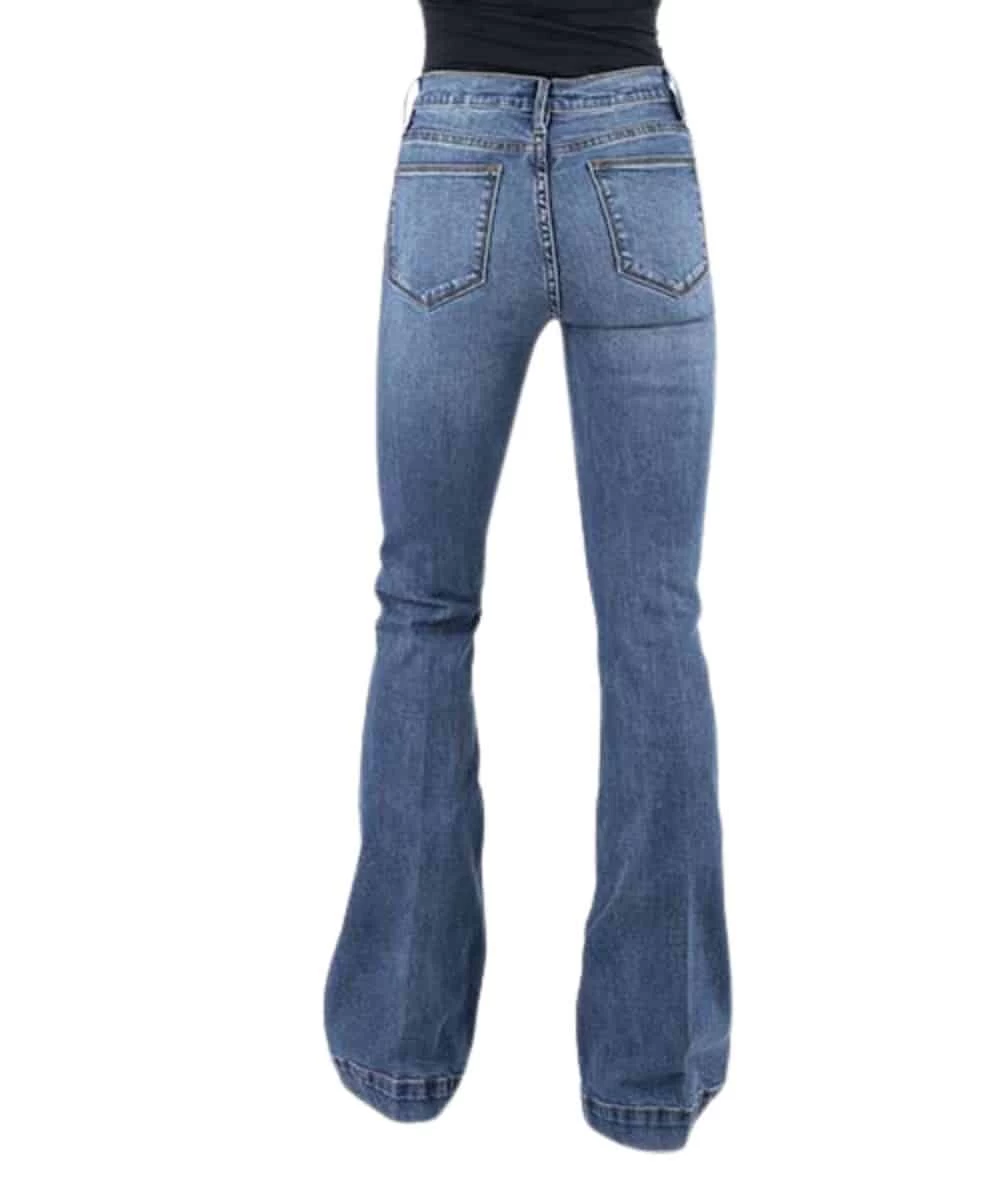 98% Cotton/2% Spandex; 921 High Rise Western Jean; Zip Fly With Button Closure; Sits At Waist; Stetson Branded Buttons, Rivets, And Zipper; Four Pocket Styling; Plain Back Pocket; Gentle Sanding And Whisker Detail; Slim Fit Through Thigh And Knee With Flare Leg; Color: Blue Jean; Style #11-054-0921-2400