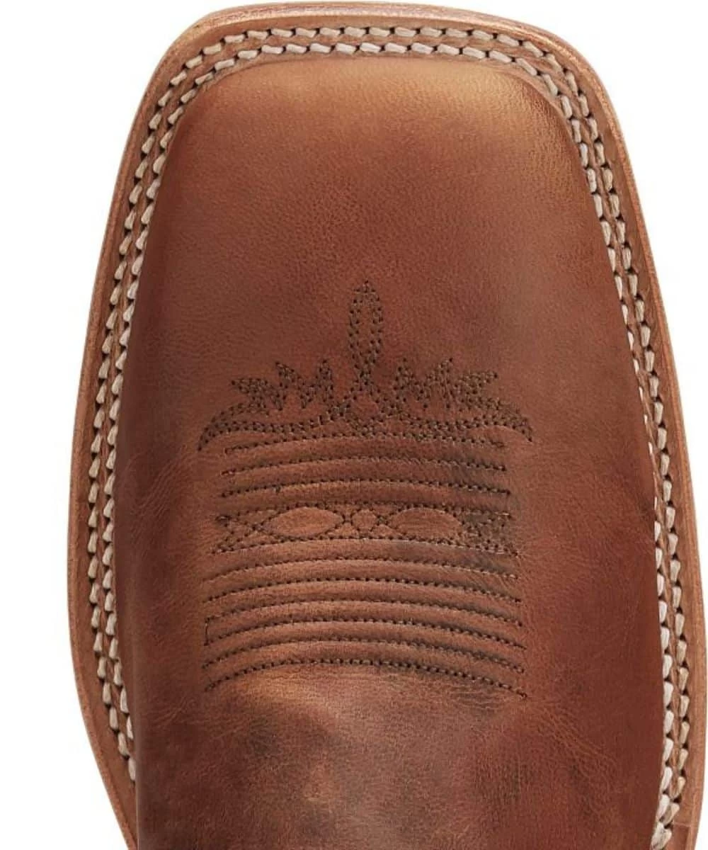 11″ Upper; Tan Worn Goat Leather; Full Welt Construction; Cushioned Insole; Leather Outsole; Metallic Shank; Stockman Heel; Medium Square Toe; Color: Honey Brown; Style #7956