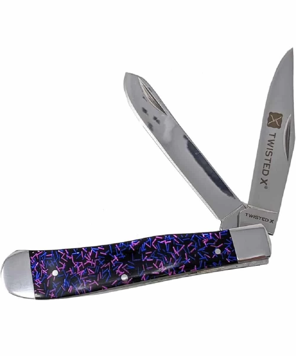 Stainless Steel; Foldable; 4.25″ Closed; Blades, Clip, And Spear; Color: Purple Fireworks; Style #XK410