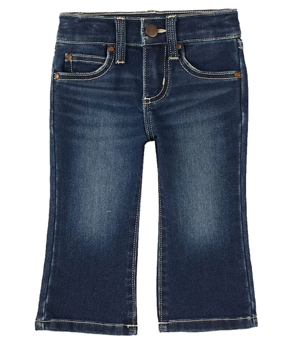 63% Cotton/35% Polyester/1% Spandex; 8.4 Oz. Denim; Dark Wash; Adjust To Fit Waistband; Zip Fly With Button Closure; Whiskers; Fading; Five Pocket Styling; Blue Stitched Logo On Back Pockets; Boot Cut Jean; Style #PQJ310D