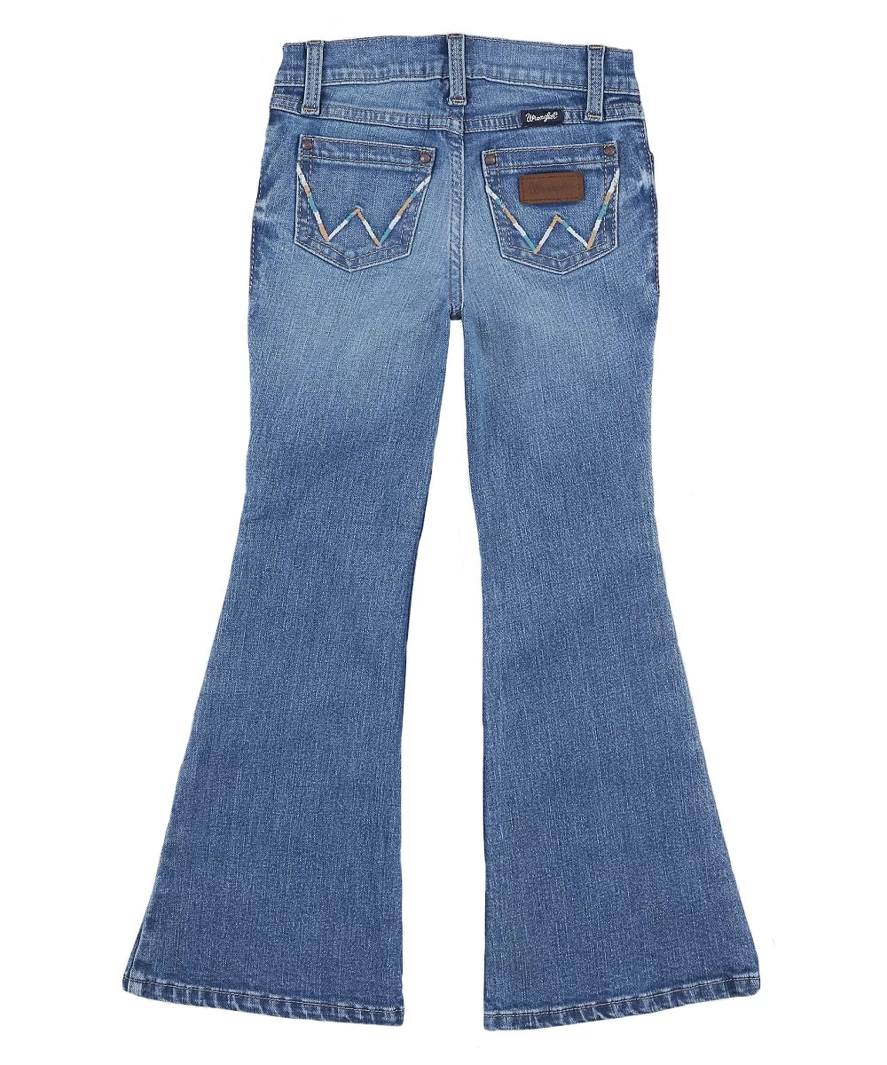 98% Cotton/2% Spandex; 10.5 Oz Denim; Slim Fit; Internal Adjustable Waistband; Flare Leg; Five Pocket Styling; Colorful W Embroidery On Back Pockets; Premium Logo Patch; Fading And Whisker Details; Color: Etta; Style #112317331