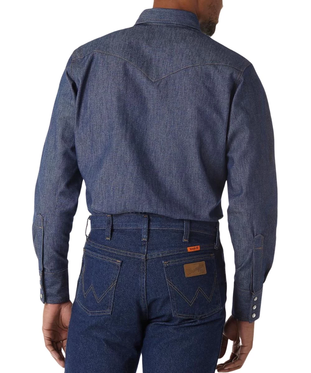 100% Cotton Flame Resistant; 7.5 Oz. Denim; Long Sleeve; Spread Collar; Snap Front Closure; Two Snap Flap Chest Pockets With Logo Embroidery; Pencil Slot Pocket; Three Snap Closure Cuffs; Authentic Western Single Point Front And Back Yokes; Safety Orange Outside ID For High Visibility; Certifications: ATPV 9.3 CAL/CM2. Meets NFPA 70e/NFPA 2112 Certification. CAT2; Color: Denim; Style #FR12127