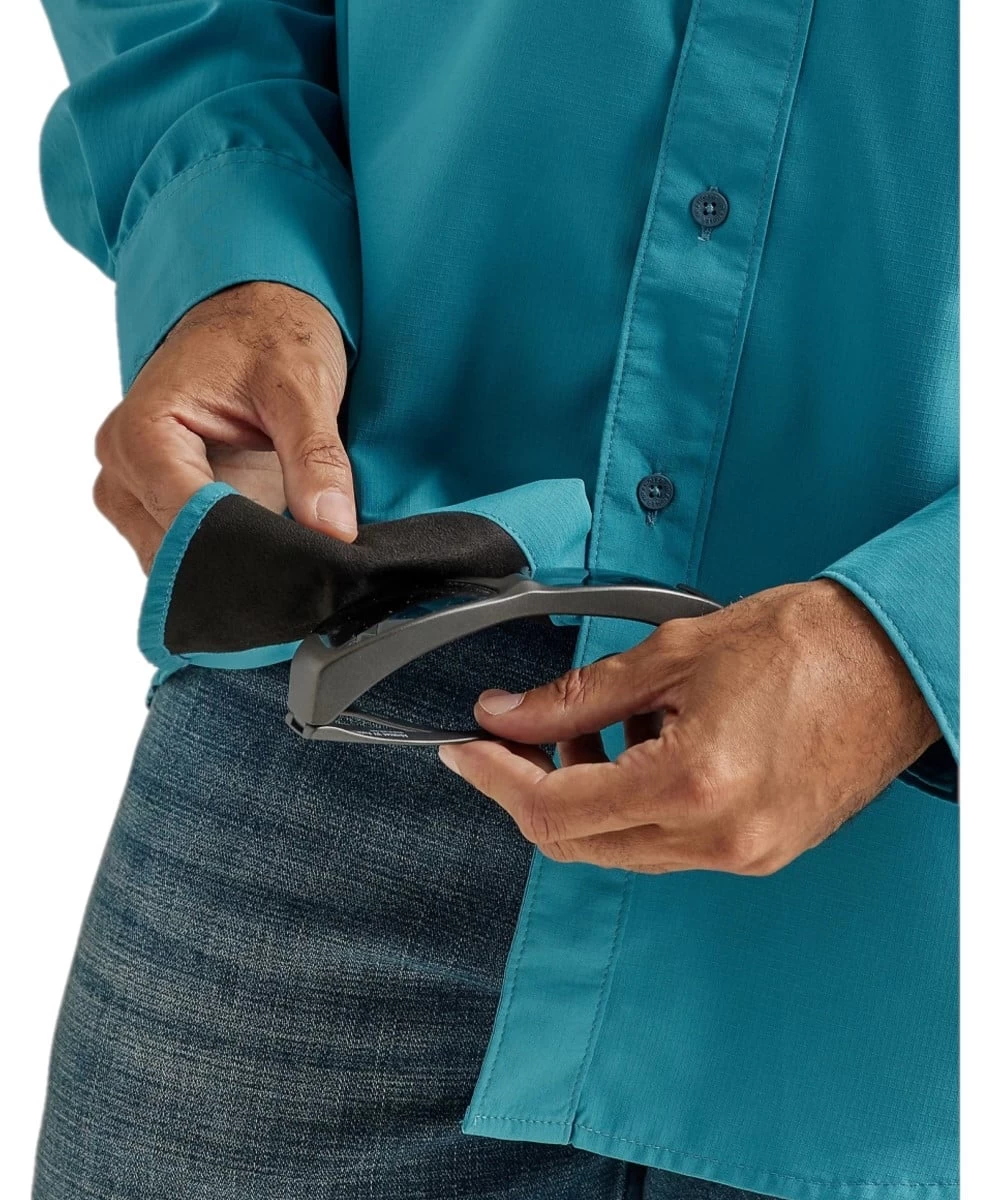 100% Polyester; Long Sleeve With Roll Tab; Hidden Button Down Collar; Classic Fit; Button Down Placket And Cuffs; Two Button Flap Chest Pockets; Pencil Slot And Secure Zip Napoleon Pocket; Eyeglass Cleaner At Hem; Western Back Yoke With Logo Embroidery; Back Ventilation; UV Protection; Moisture-Wicking Finish; Color: Faience; Style #112323773
