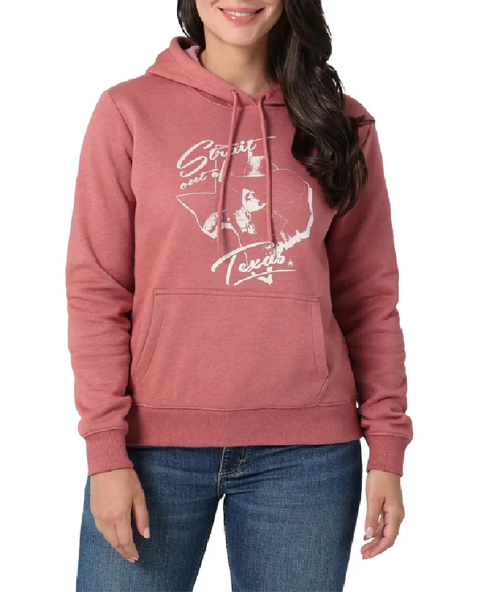 55% Cotton/45% Polyester; Long Sleeve; Adjustable Drawstring Hood; Kangaroo Pocket; Ribbed Cuffs And Waistband; Graphic Print On Chest; Color: Withered Rose; Style #112319175